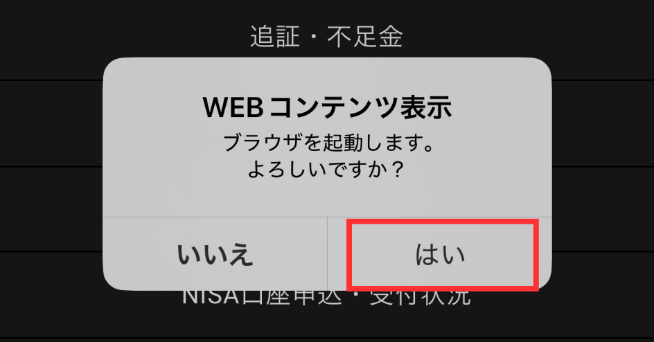 WEBコンテンツ表示の確認がでたら「はい」を選択します。