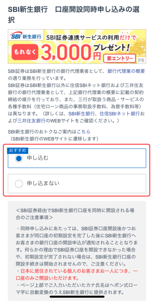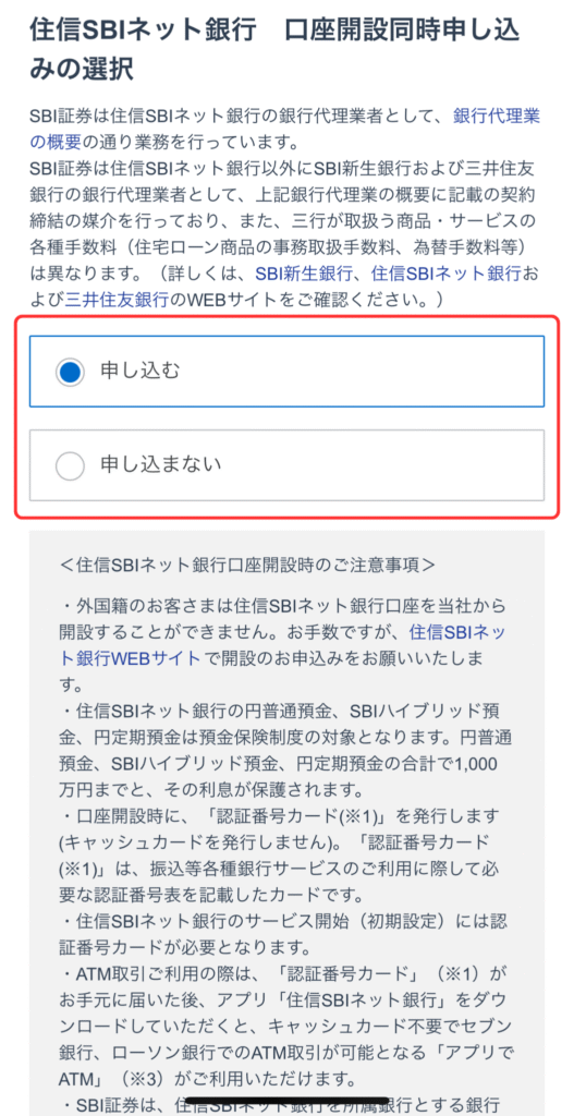 ⑫住信SBIネット銀行の開設選択