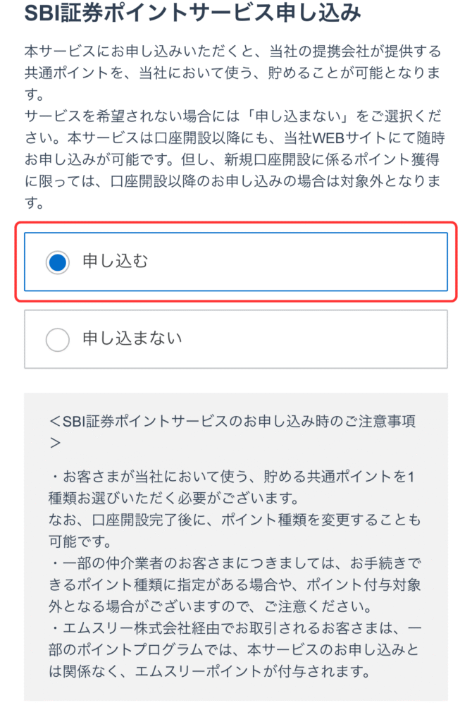 ⑭ポイント申し込みの選択