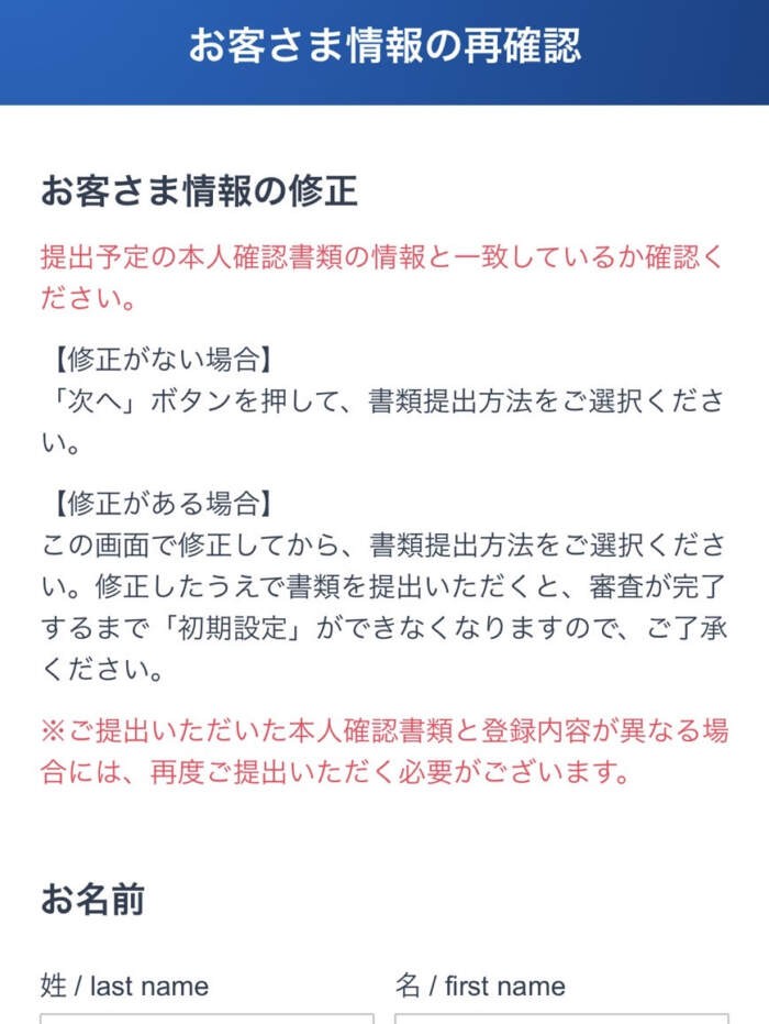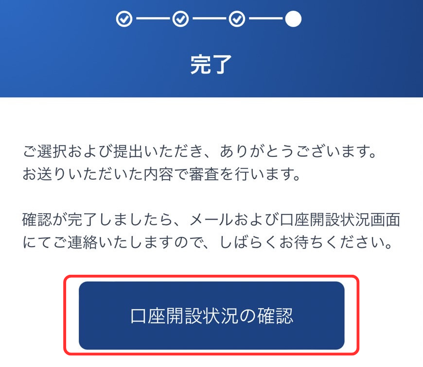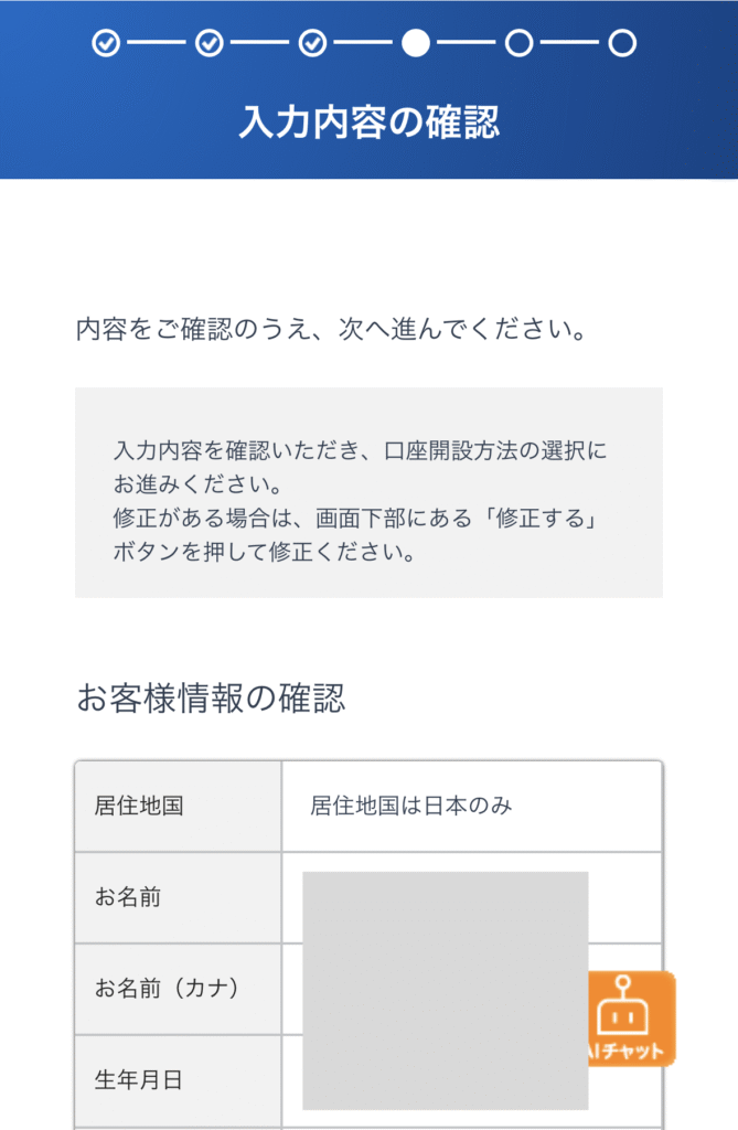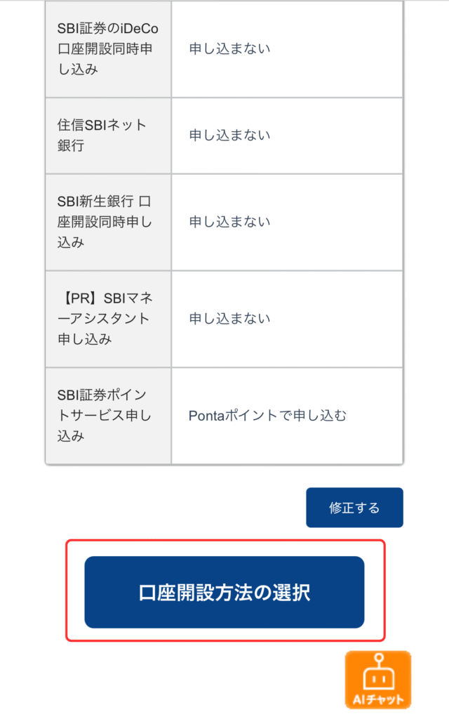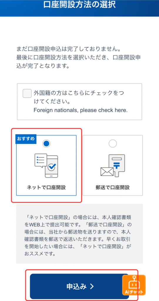⑯入力内容を確認して「口座開設方法の選択」をタップ