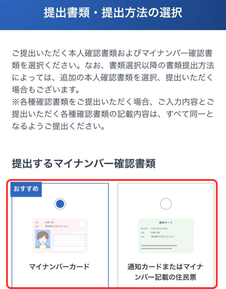 (通知カードの場合、別途本人確認書類が必要)