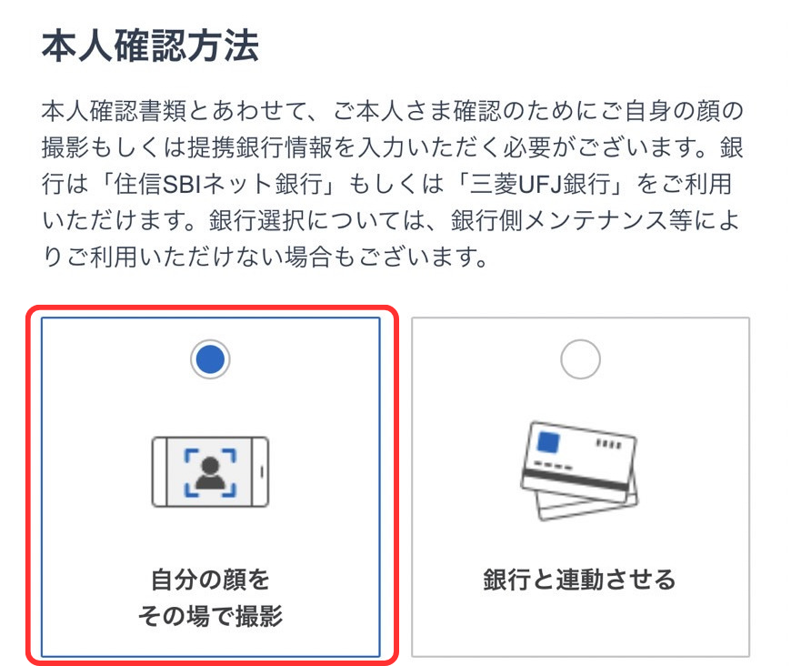 ⑥本人確認方法を選択して「次へ」