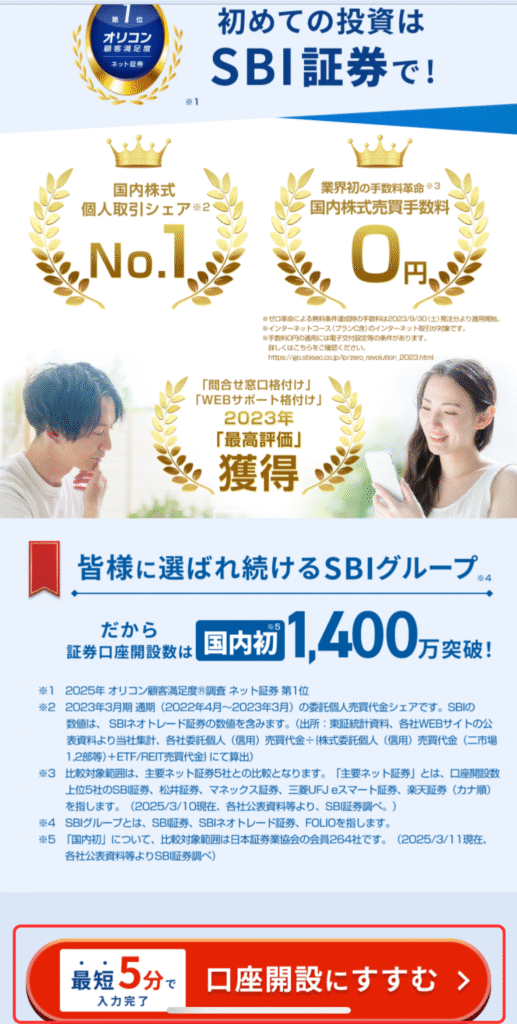 ①SBI証券のページへアクセス