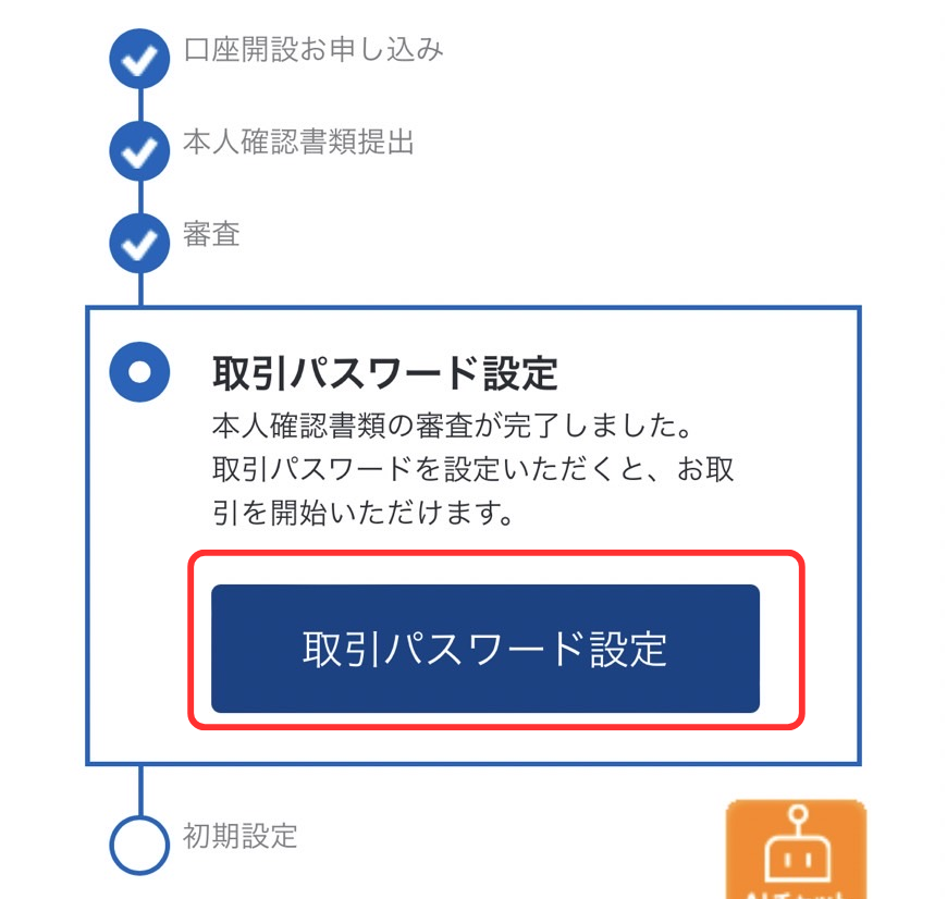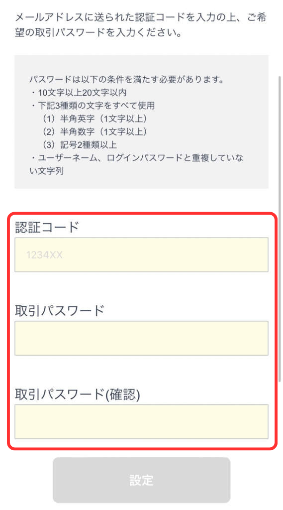 取引パスワードを作成して「設定」をタップ。