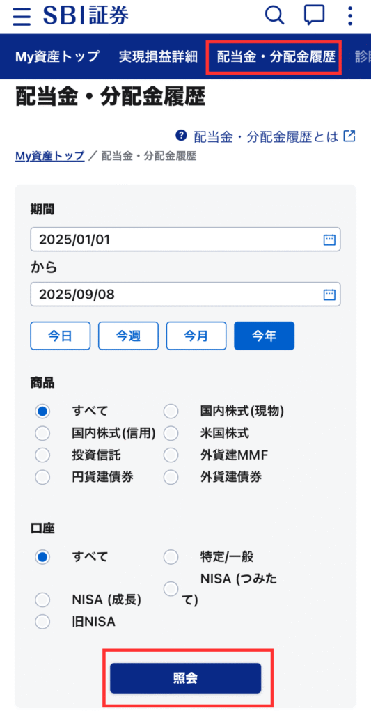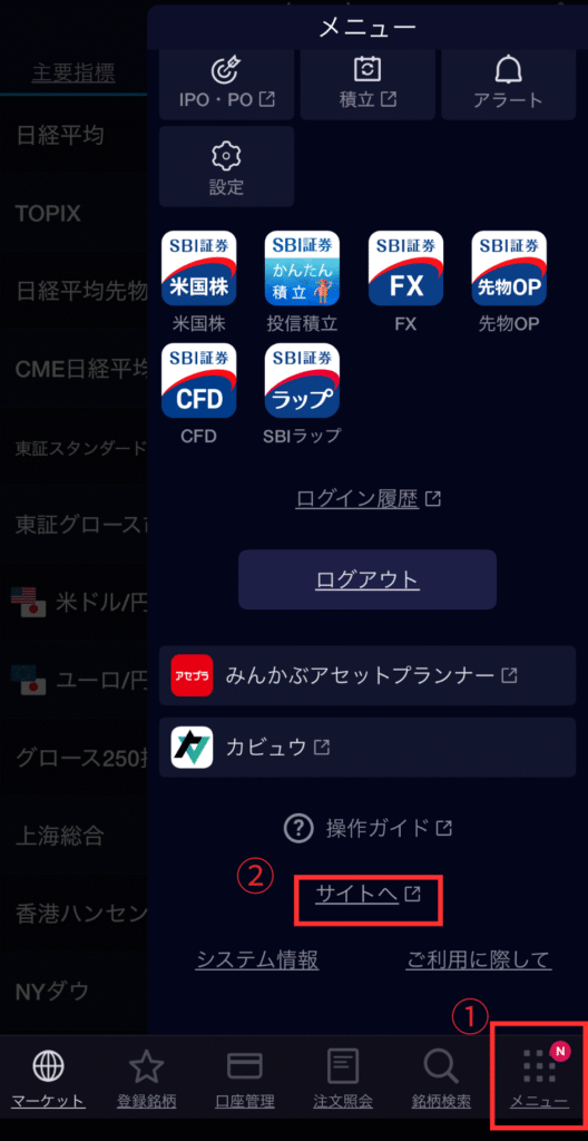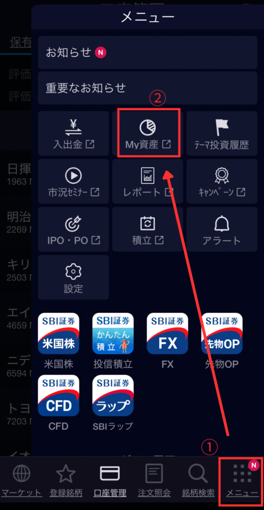 ▶SBI証券での確認方法