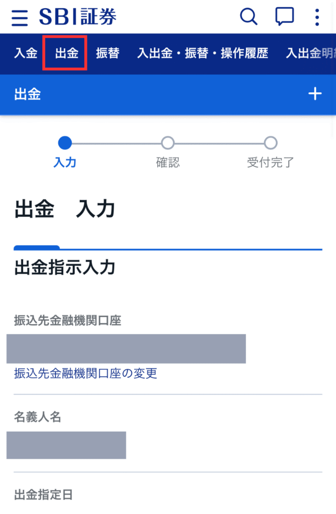 【出金指示確認】をタップ。