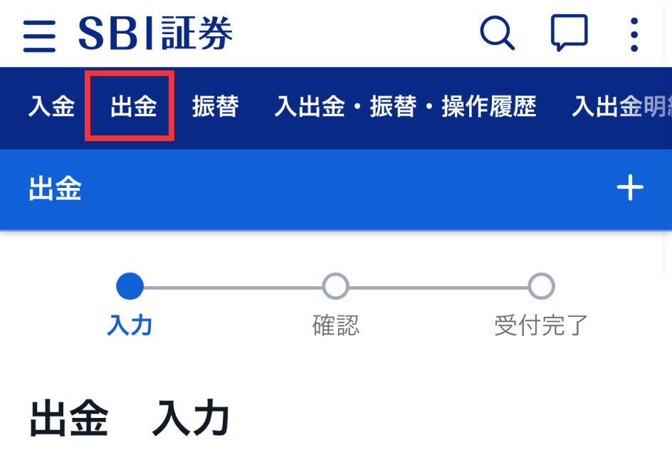 【出金】をタップ